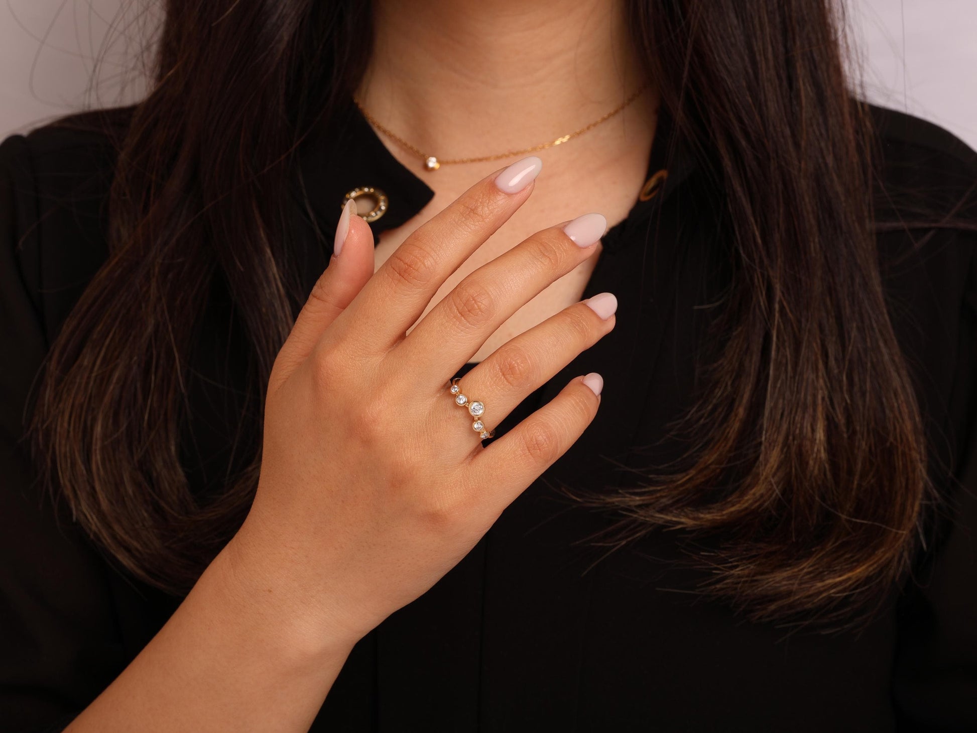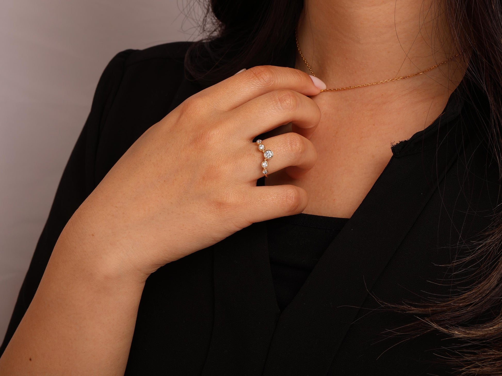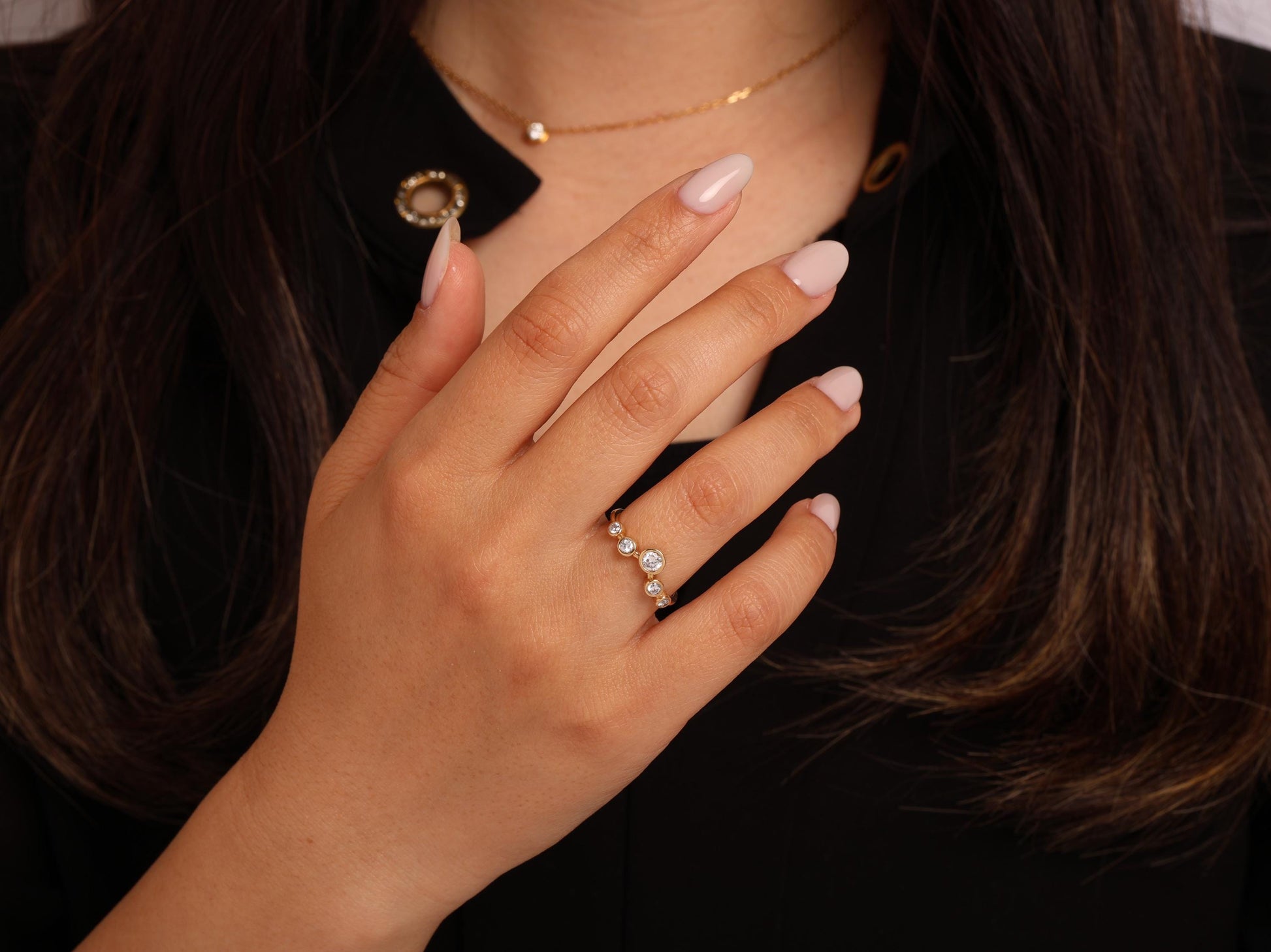 14K Gold Bezel Diamond Bubble Ring – Five-Stone Lab Diamond Band, Elegant Solid Gold Stacking Ring, Minimal Modern Jewelry, Gift for Her